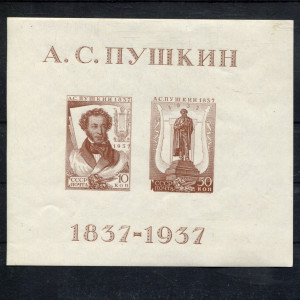Всесоюзная Пушкинская выставка в Москве. Блок 1 тип I.
