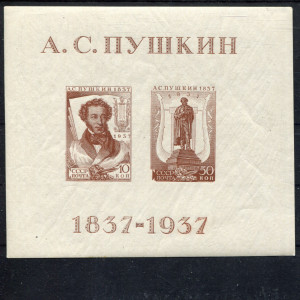Всесоюзная Пушкинская выставка в Москве. Блок 1 тип I.