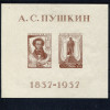 Всесоюзная Пушкинская выставка в Москве. Блок 1 тип II....