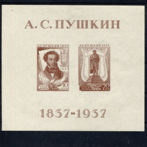 Всесоюзная Пушкинская выставка в Москве. Блок 1 тип II.